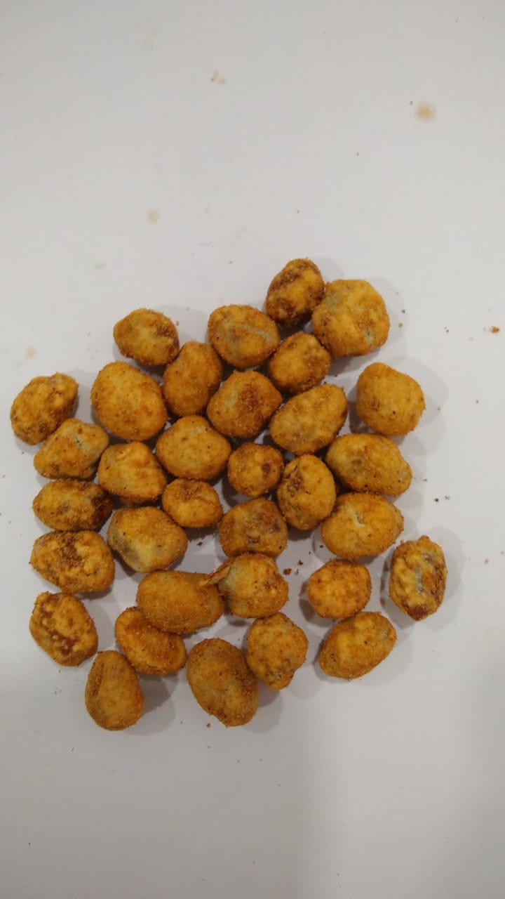 Peanut qty 500g added sugar solutn 40 g in 6 step and dispersion of bulking agent ( wheat Flour + Modified starch ) in coating pan